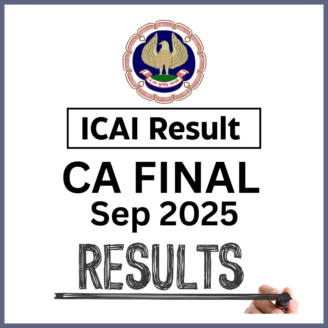 ICAI CA September 2025 result Date Announced:- The Institute of Chartered Accountants of India (ICAI) has confirmed that the CA September 2025 exam results will be announced on November 3. Results for CA Final Sep 2025 and CA Intermediate Sep 2025 will be released around 2 pm, while CA Foundation Sep 2025 results will be declared around 5 pm the same day. Students can check their marks on https://icai.nic.in/caresult/ using Roll no and Registration numbers.